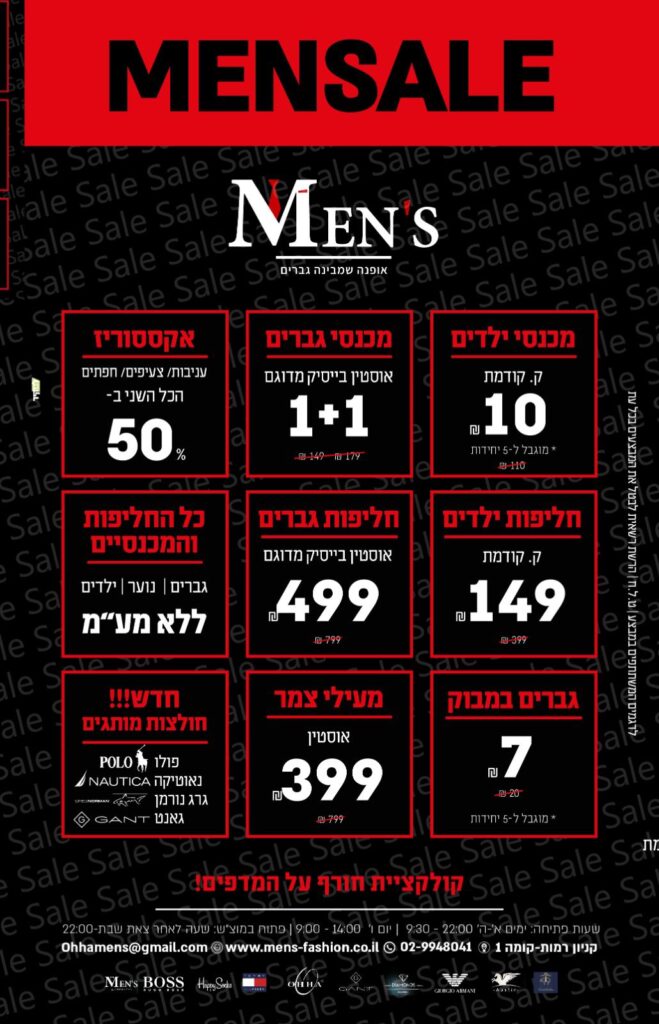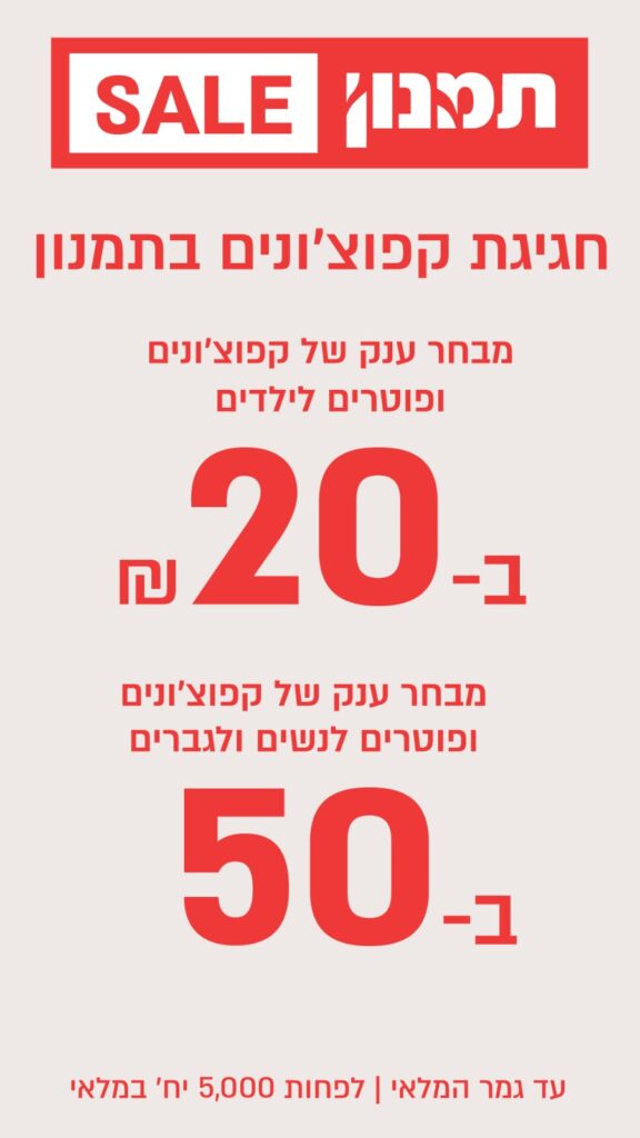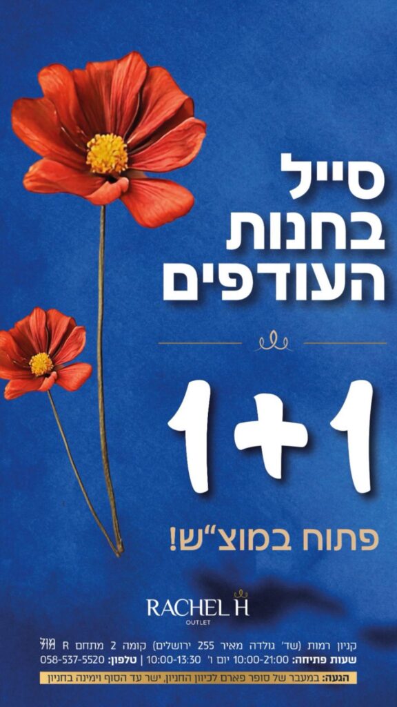 בואו ליהנות מהמבצעים החמים של קניון רמות!בכל חודש מחכות לכם הטבות ייחודיות והנחות משמעותיות בחנויות המובילות.זה הזמן לקנות חכם, לחסוך, ולהתפנק בשופינג משתלם במיוחד.קניון רמות – הבית לקניות של הקהל הדתי והחרדי בירושלים.